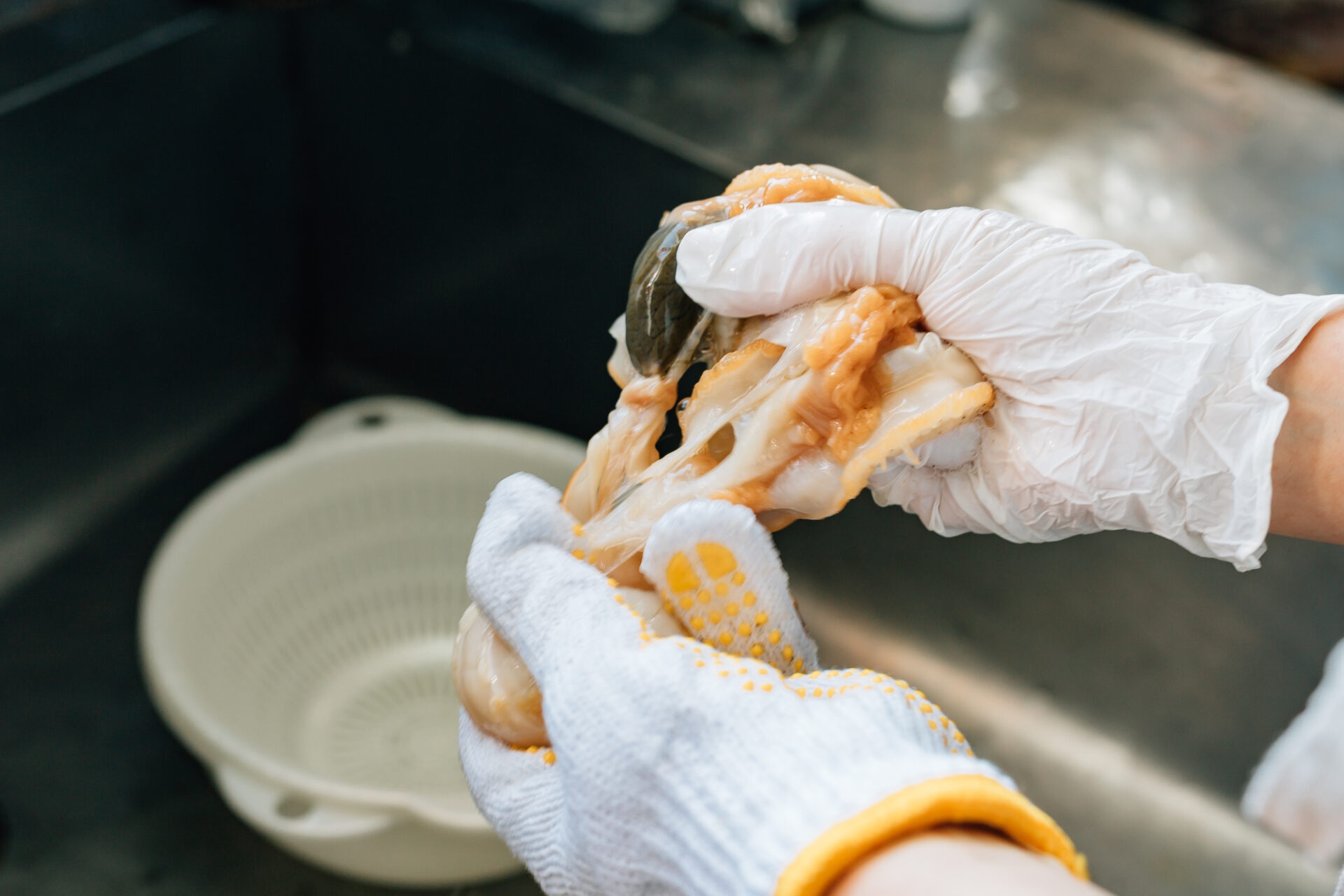活きたホタテは剥こうとすると貝を閉じてくるため、貝剥きはホタテとの格闘です。
