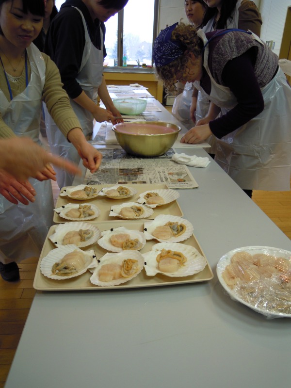 4. 自分で剥いたホタテを調理していただきます
