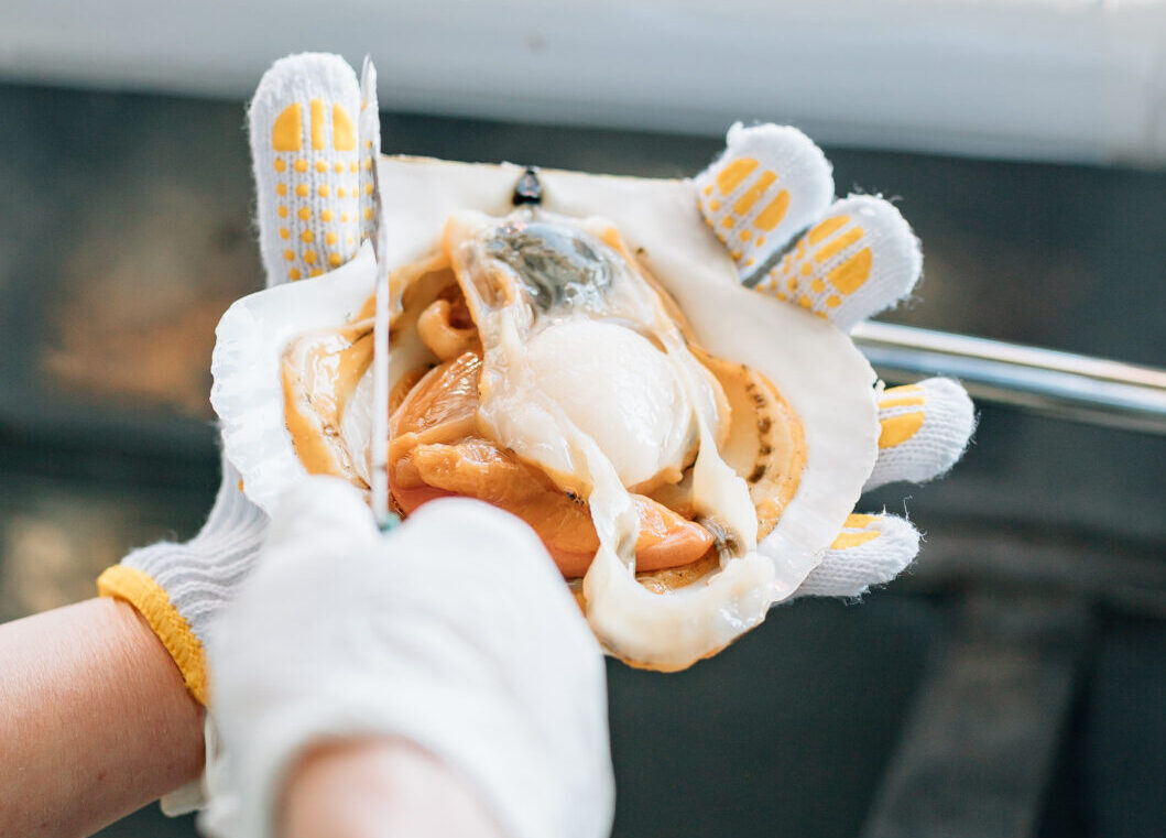 天然の活ホタテの貝剥きの体験です。 ホタテの貝剥きの方法と食べ方を地元のプロが伝授します。 体験の最後には、自分で剥いたホタテを焼いたり刺身にして ...