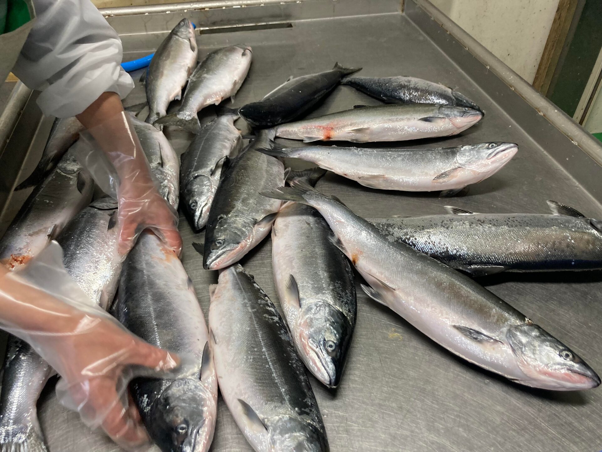 標津町で水揚げされた新鮮なサクラマスを使った加工体験。鮭よりも漁期が早く、春から夏に獲れるサクラマスを使って「新巻」をつくります。 「サクラマス」 ...