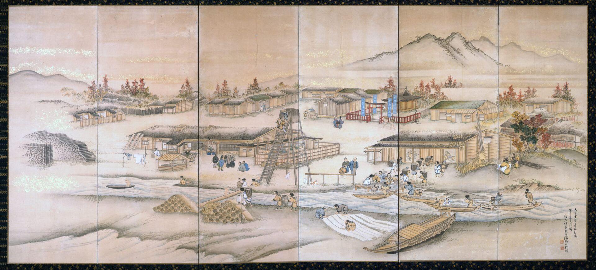 江戸時代末期にアイヌと和人が共に開拓に臨む水産業のまちづくりを構想して描かれた「標津番屋屏風絵」。中には根室管内最古の神社である「標津神社」やそこ ...