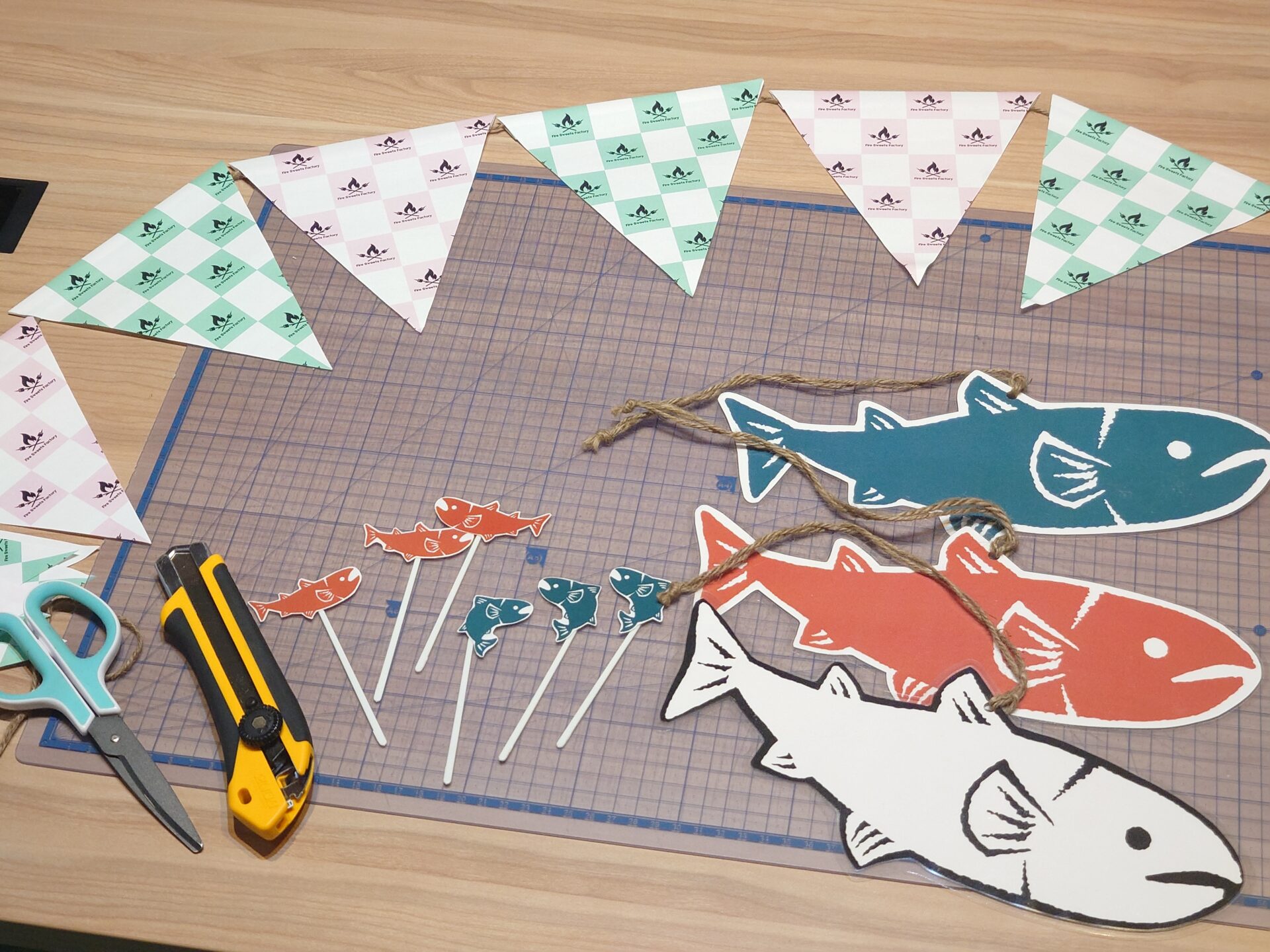 店構えにもこだわり、ガーランドや標津町観光ポータルサイト「けさのさけ」でも使用されている鮭のイラストで飾り付けをし、かわいいお店でお客さまをお出迎えしました。