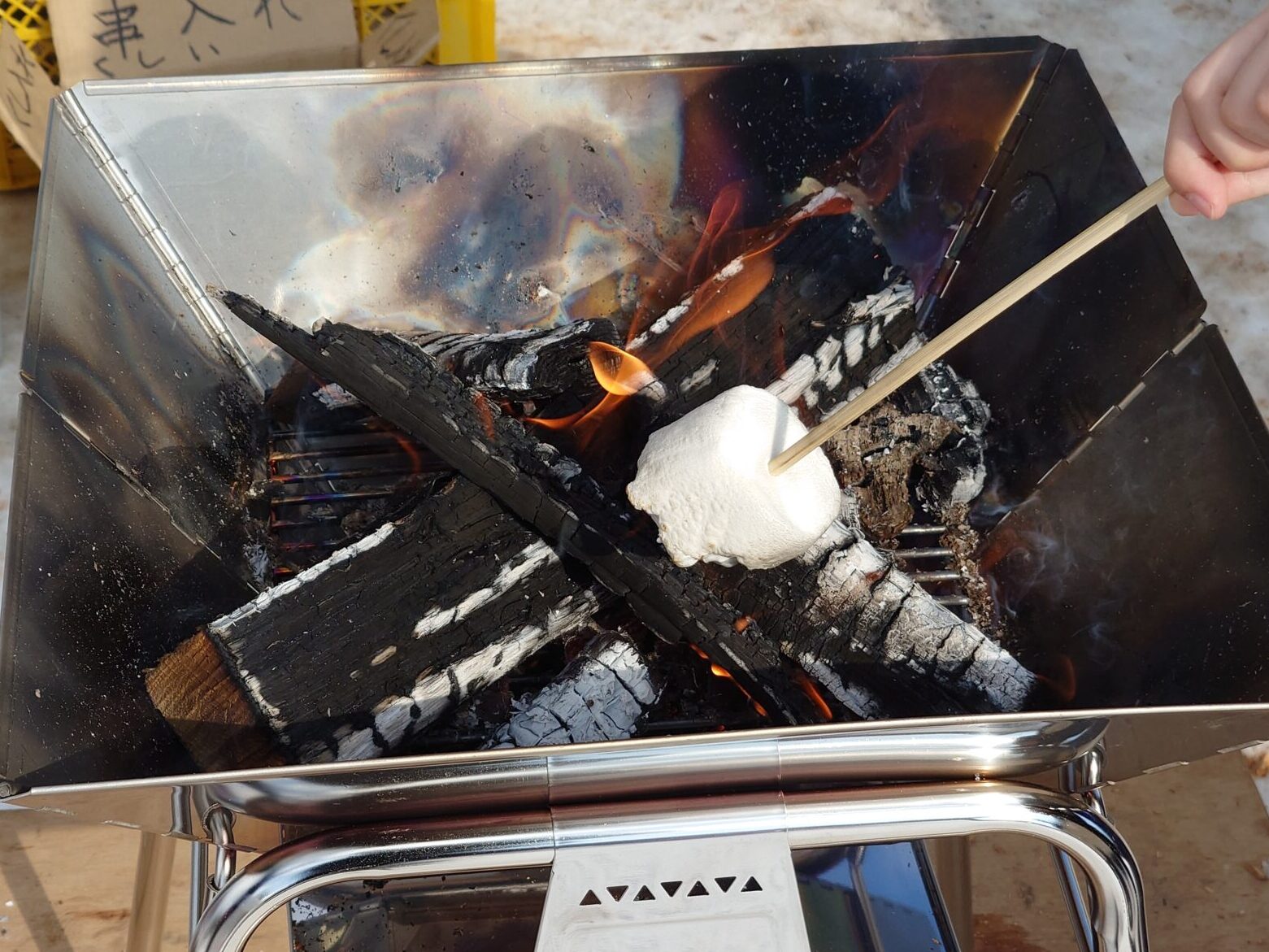 販売したのは、焚火を使い自分で焼いて食べる「焼きマシュマロ」です。