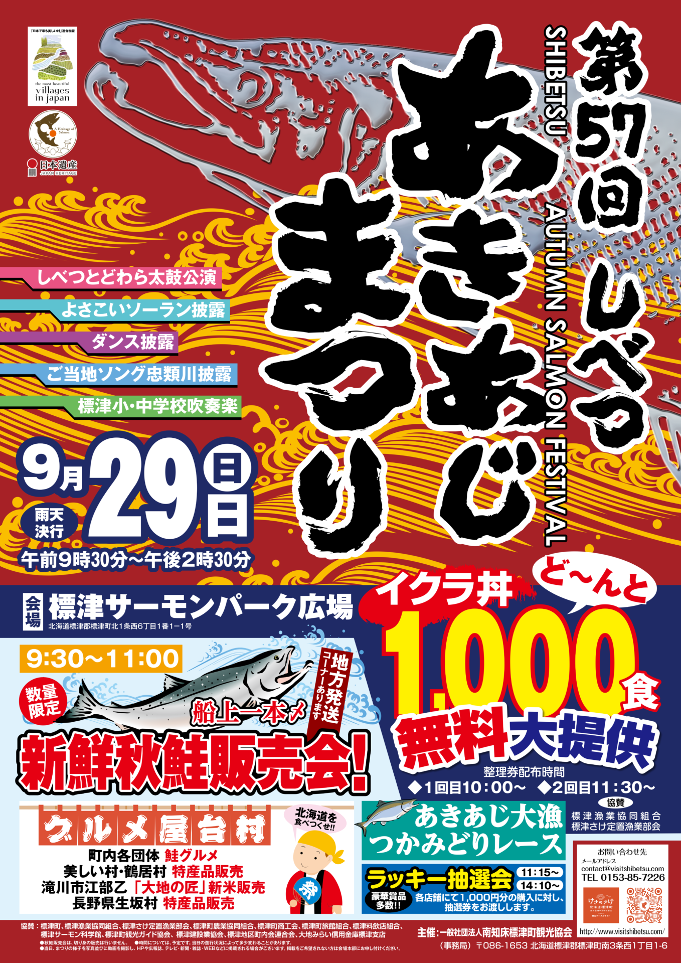 今年で57回目となる『しべつあきあじまつり』が9月29日(日)に開催されます。