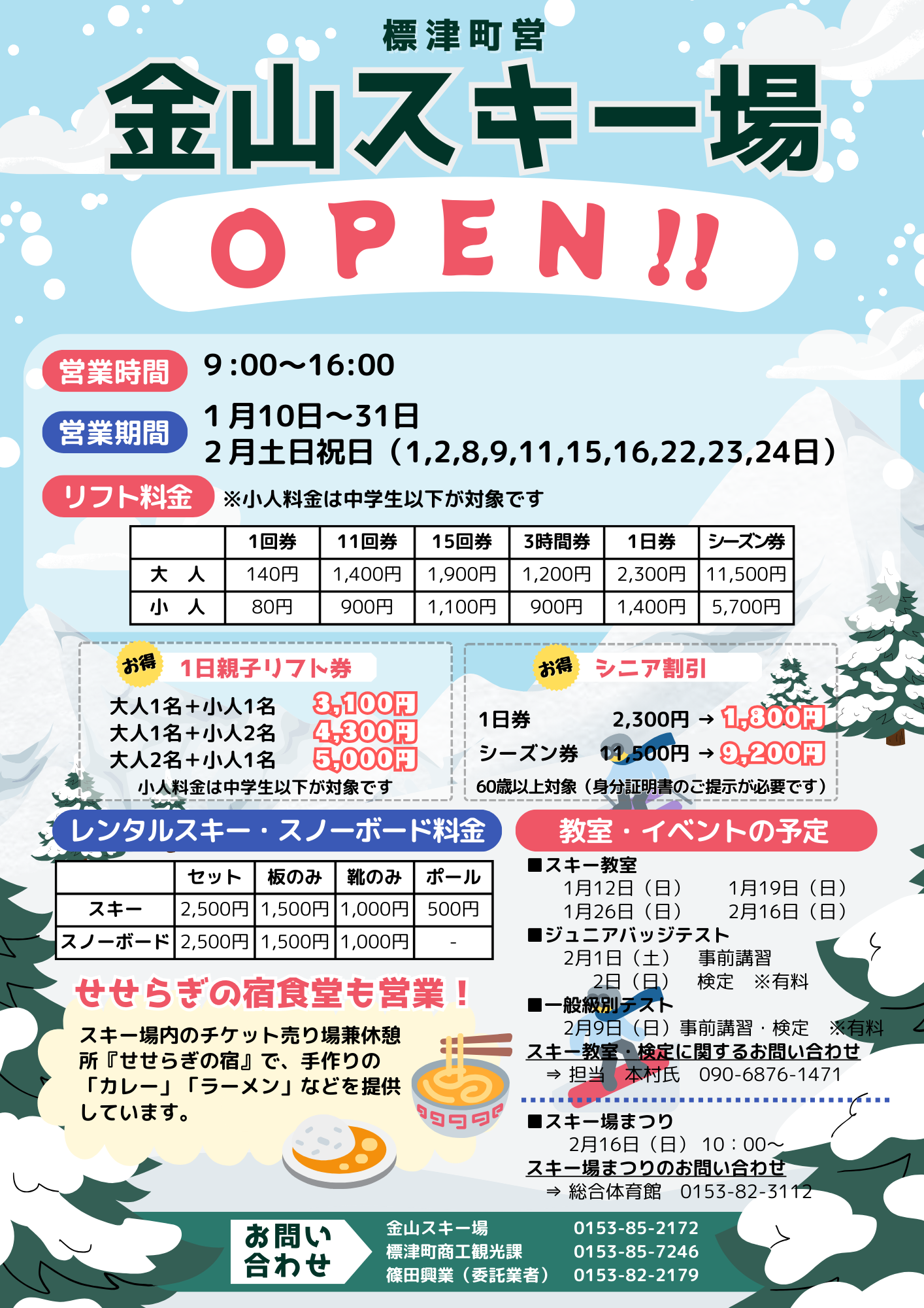 町営金山スキー場オープンのお知らせ