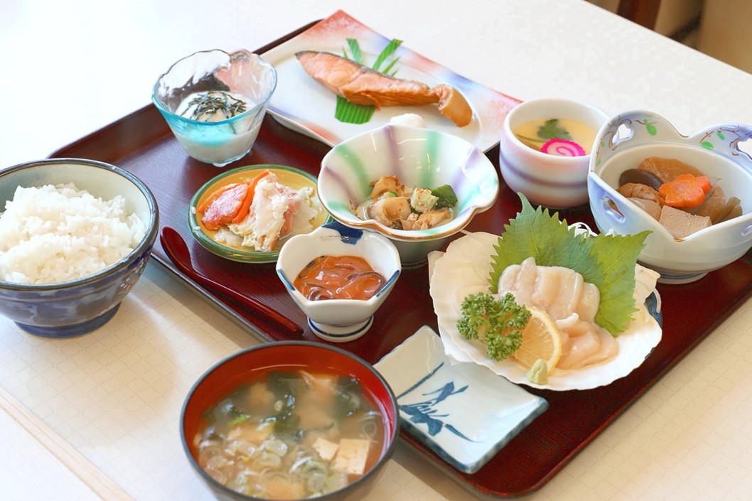 地元で水揚げした鮭を使い塩味を効かせた焼き鮭や日替わりのお刺身をセットでいただけます。