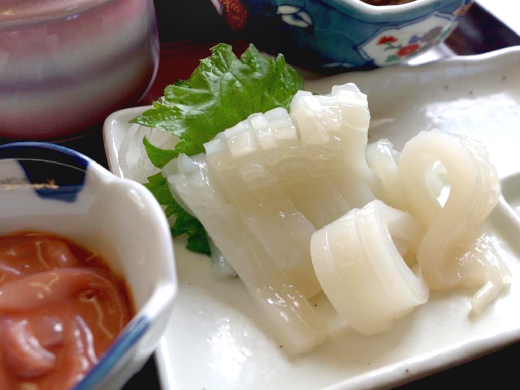 地元で水揚げされた鮭を使った焼き鮭と日替わりで新鮮なホタテやイカなどお刺身がセットの定食です。 他に茶碗蒸し、味噌汁、イカの塩辛、とろろなどボリューム満点!
