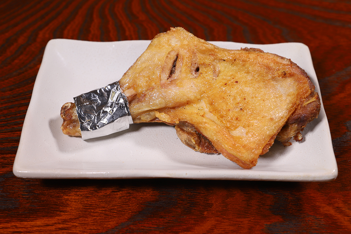 人気メニューの骨付きの鶏モモ肉を素揚げした『とりあし』は、皮がパリッとして肉厚でジューシーです。