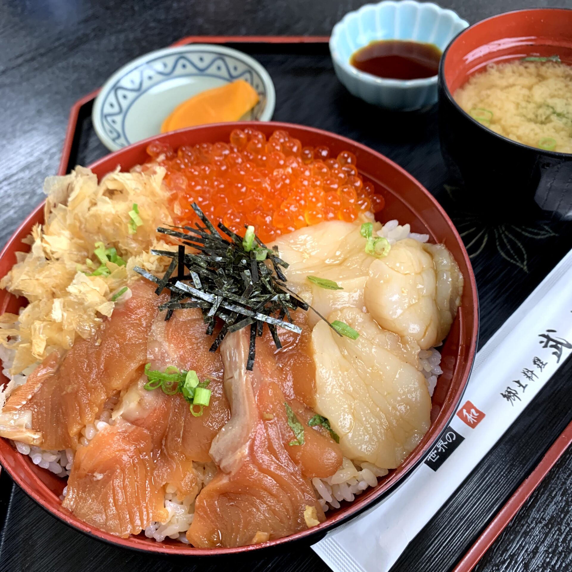 鮭ぶし・鮭・いくら。親子三代が丼ぶりになりました。 「切身鮭の出汁正油漬け」に「最高級品のいくら」、「甘みの濃い鮭節」の相性が抜群のご当地丼です。 鮭、ホタテ、いくら、鮭ぶしと標津の名産を贅沢に味わい尽くせます!