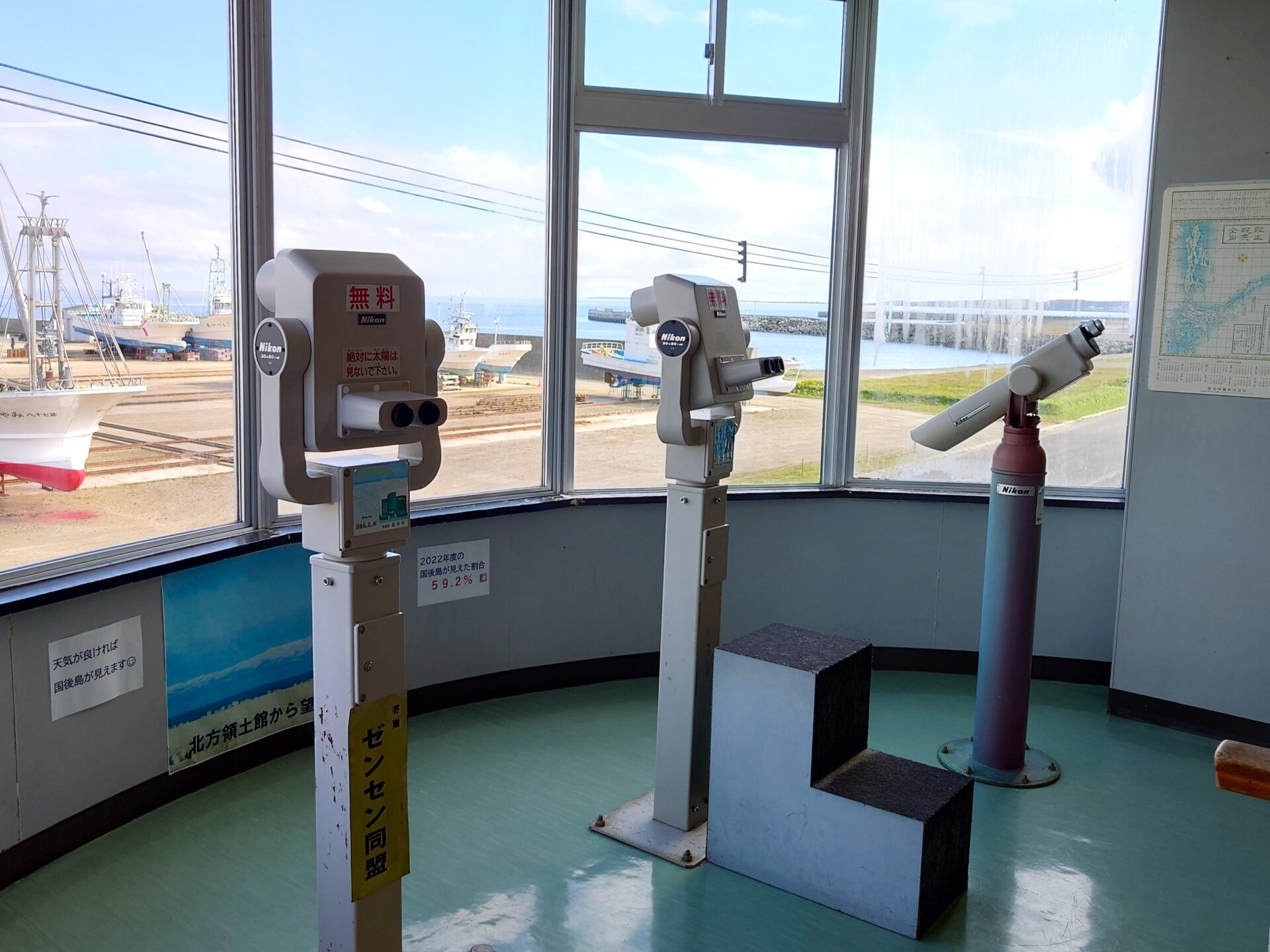 2階にある展望室からは、24km先にある国後島を間近に望むことができます。